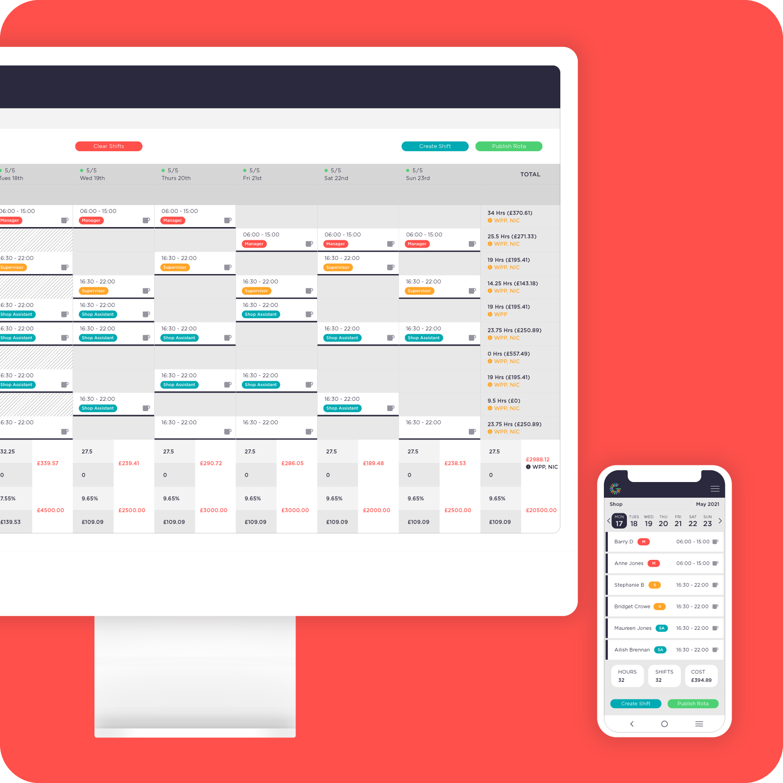 Create and manage separate, budgeted rotas for each department or cost centre